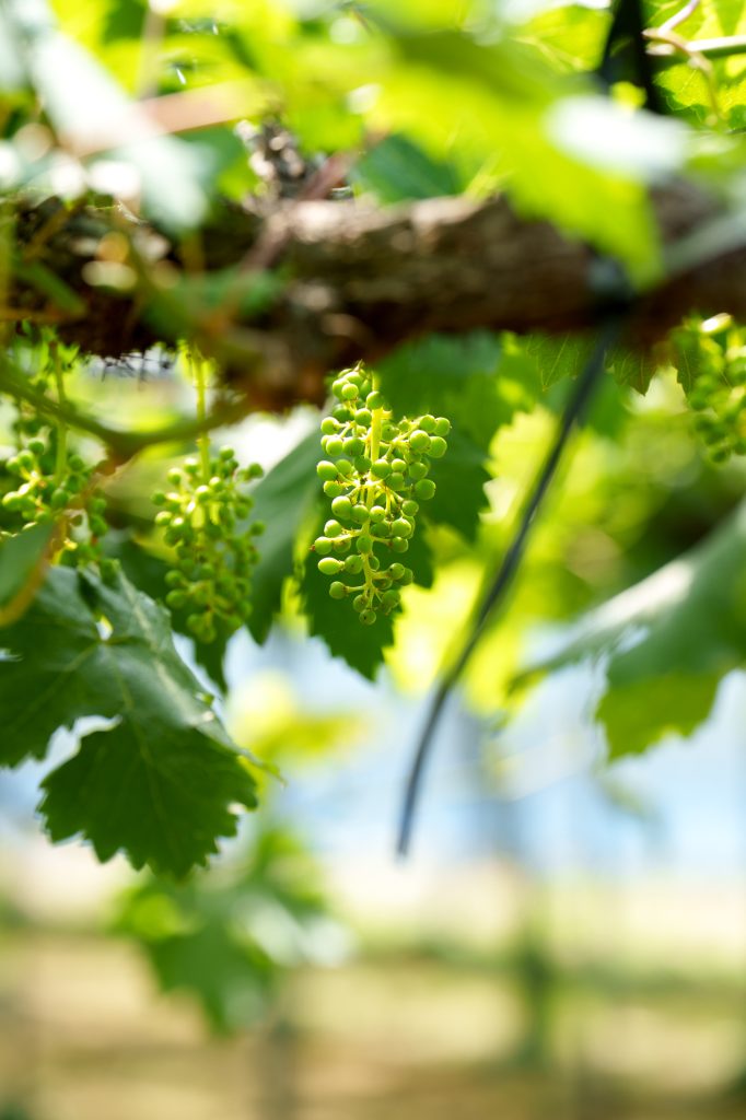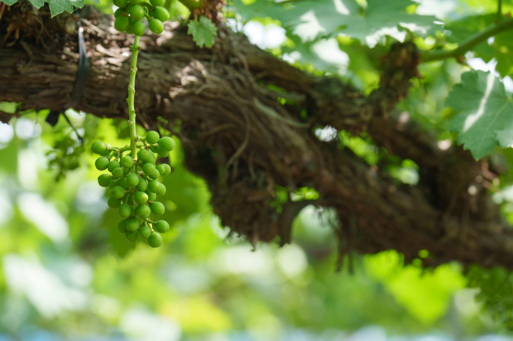 見てみると、摘粒をしていない房には100粒ほどついている。これを一房一房摘粒する、その数およそ3,000房。