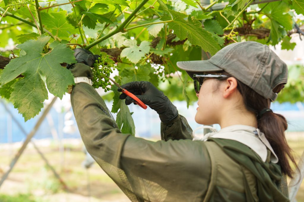 近年人気のシャインマスカット。ジューシーな甘味で、皮まで食べられて、タネもほとんどない人気の果物は、農家さんの手仕事の賜物だと目の当たりにしました。